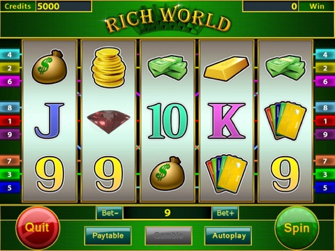 5 Reels, 9 Paylines slot machine in the Rich style!