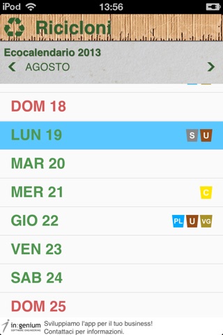 Con un tocco puoi vedere la raccolta dei prossimi giorni, che tipo di rifiuto viene raccolto oggi o domani.