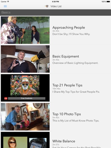 This is a basic, or starter, app about lighting. However, as you will see, pros use many of these techniques and accessories to get great shots.