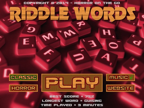 There are many other neat attributes like; A 10 Track Randomized Music Ensemble, Mix Feature to shuffle up the letters, Word Multipliers, Bonus Points and a Horror Mode with ghastly skulls and moving beasts. All this with Unlimited Levels so you can play forever!