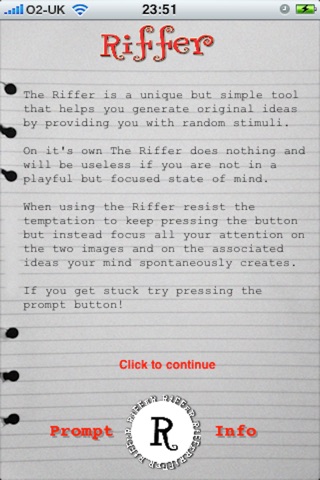 So whether you are an advertising executive attempting to dream up a new branding concept, an illustrator looking to design an eye catching book jacket, a screen writer all set to write a new screen play but sick of staring at the empty page, or even a marketing executive who knows how important thinking out of the box is for generating interest, then the riffer is a tool you will need to start using.