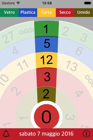 Indica quanti giorni mancano al ritiro del determinato tipo di rifiuto in modo da sapere se è il caso di iniziare un altro sacco nuovo.