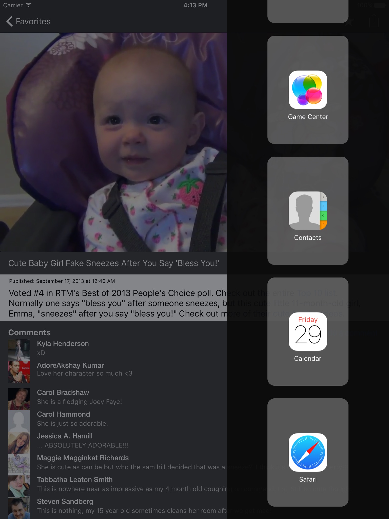 - Share videos through Facebook, Twitter, text, and email