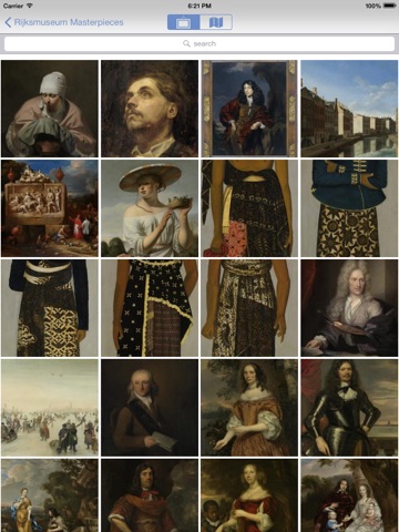 With Masterpieces you can view about 100,000 works from your iPhone or iPad. The works are divided into several collections, including paintings, prints, dishes etc.