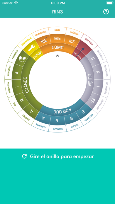 Utiliza el anillo RIN3 para realizar un diagnóstico diferencial de rinitis, en base a síntomas y situaciones del paciente, sin tener que llevar encima el anillo físico. Además, puedes ver una pequeña explicación de cada sección del anillo.