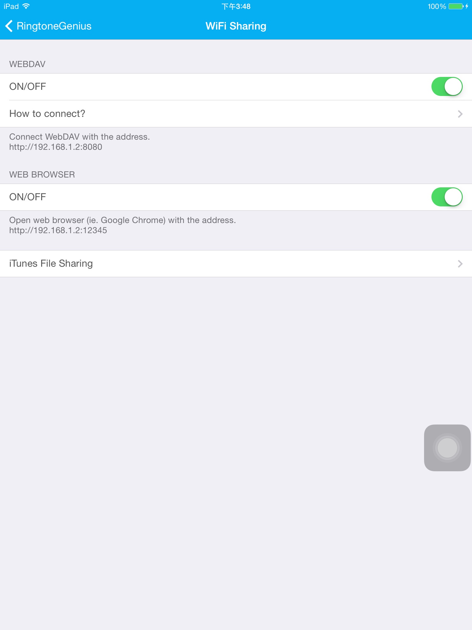 ▶ Wifi transfer via web browser on pc or connect as WebDAV on PC. Upload sounds to make ringtone, download and sharing.