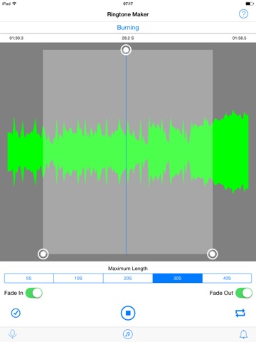 With this Totally FREE app, you can easily create custom ringtones! Just choose your beloved iPod song, adjust your ringtone length and swipe the audio wave to select the perfect clip, and then your ringtone is ready! You can even record any sound, process it and make it your ringtone! Incredibly easy and fast!