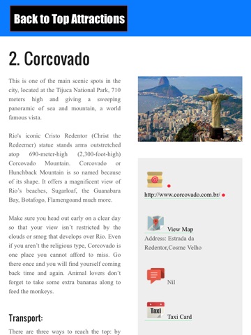 Rio de Janeiro Travel Guide is the ultimate Pocket travel guide you should own to traveling through Rio de Janeiro. This app provide you with all the maps and travel information you need in your iPhone/iPad and discover the most exciting places to visit during your stay! Our app is designed from ground up to be a fast reader for large image maps.