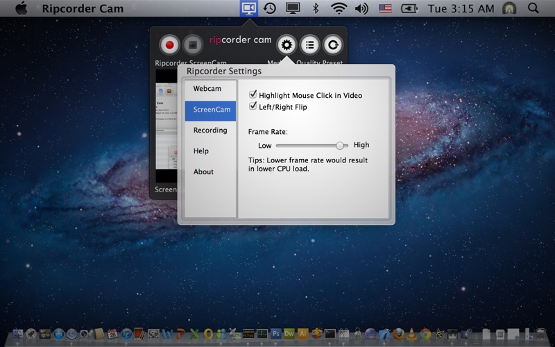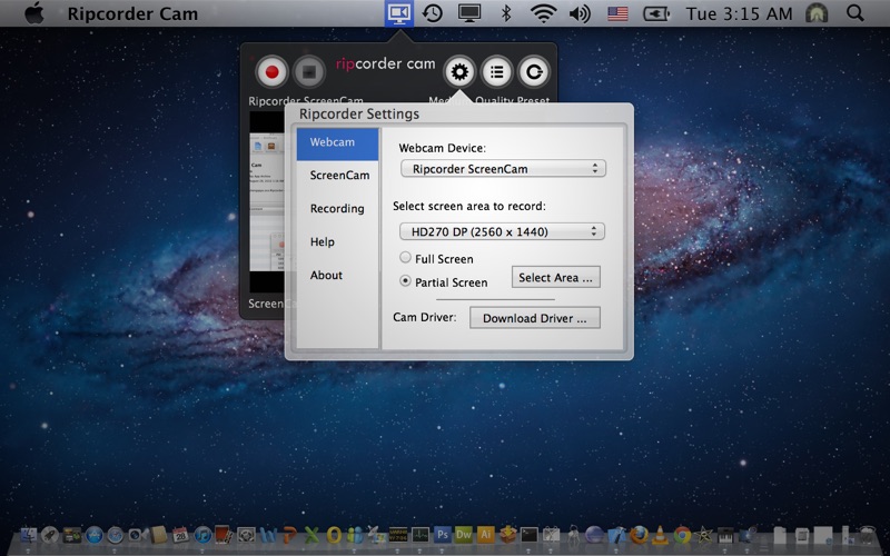 Ripcorder Cam lets you capture and record your macs webcam video, and share your screen on webcam. Using Ripcorder Cam, you can make movies using either webcams (such as macs FaceTime/iSight camera) or on-screen activity of your mac. You can use Ripcorder Cam to, for instance, create demo movies of mac’s screen activities.