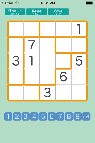 If two identical numbers appear in the same row or column, at least that many cells with other numbers must separate them. For example, two cells both containing 1 may not be orthogonally adjacent, but must have at least one cell between them with a different number. Two cells marked 3 in the same row or column must have at least three cells with other numbers between them in that row or column, and so on.