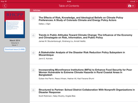 CURRENT SUBSCRIBERS to Risk, Hazards & Crisis in Public Policy can “pair” their device with their personal or institutional subscription to enjoy full access in this iPad edition.