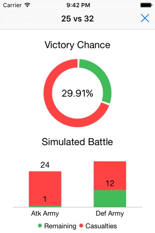 • Attack Calculator: Enter the values of the attacking and defending armies and have the victory chance and the simulated result of the battle calculated.
