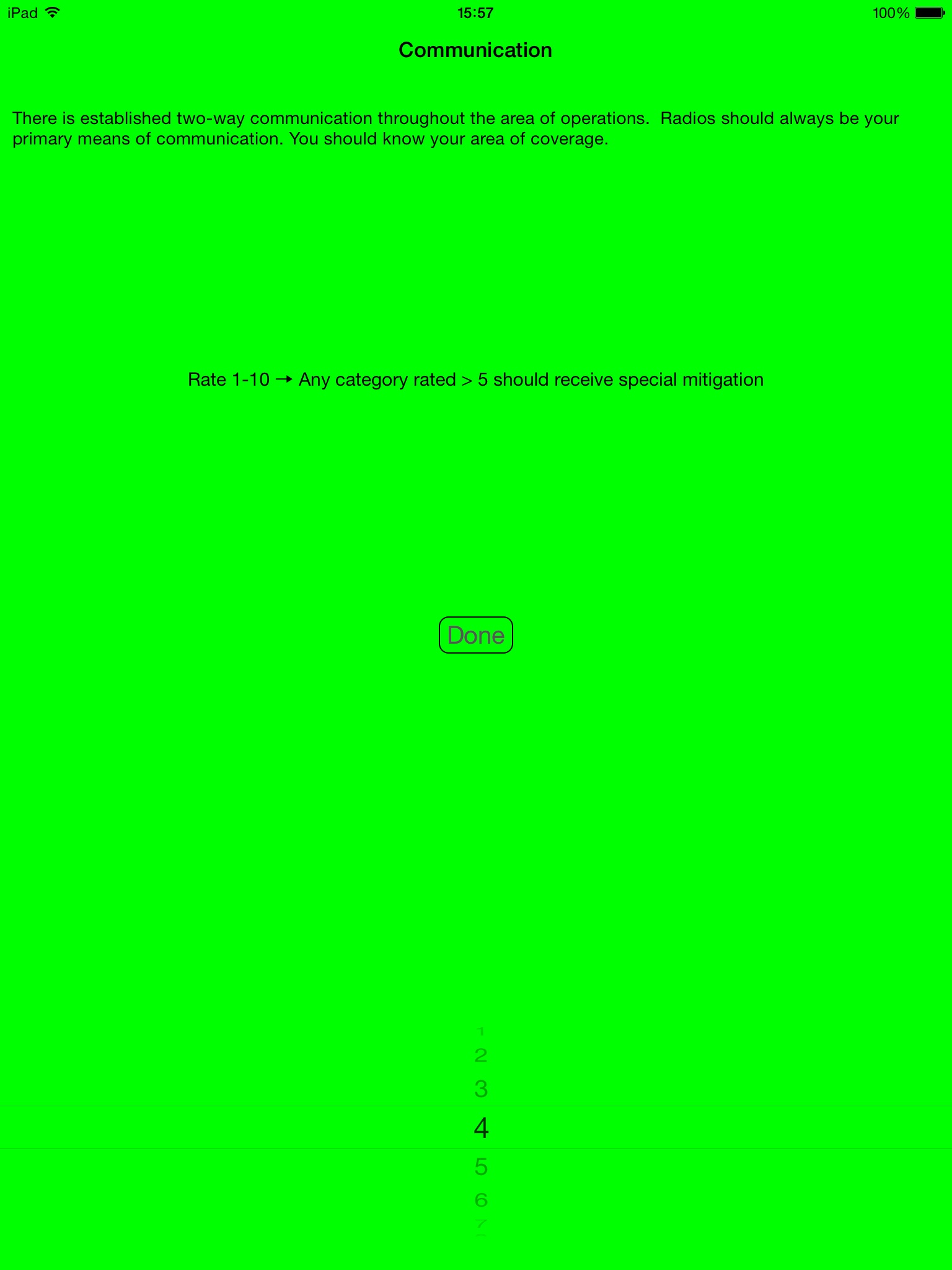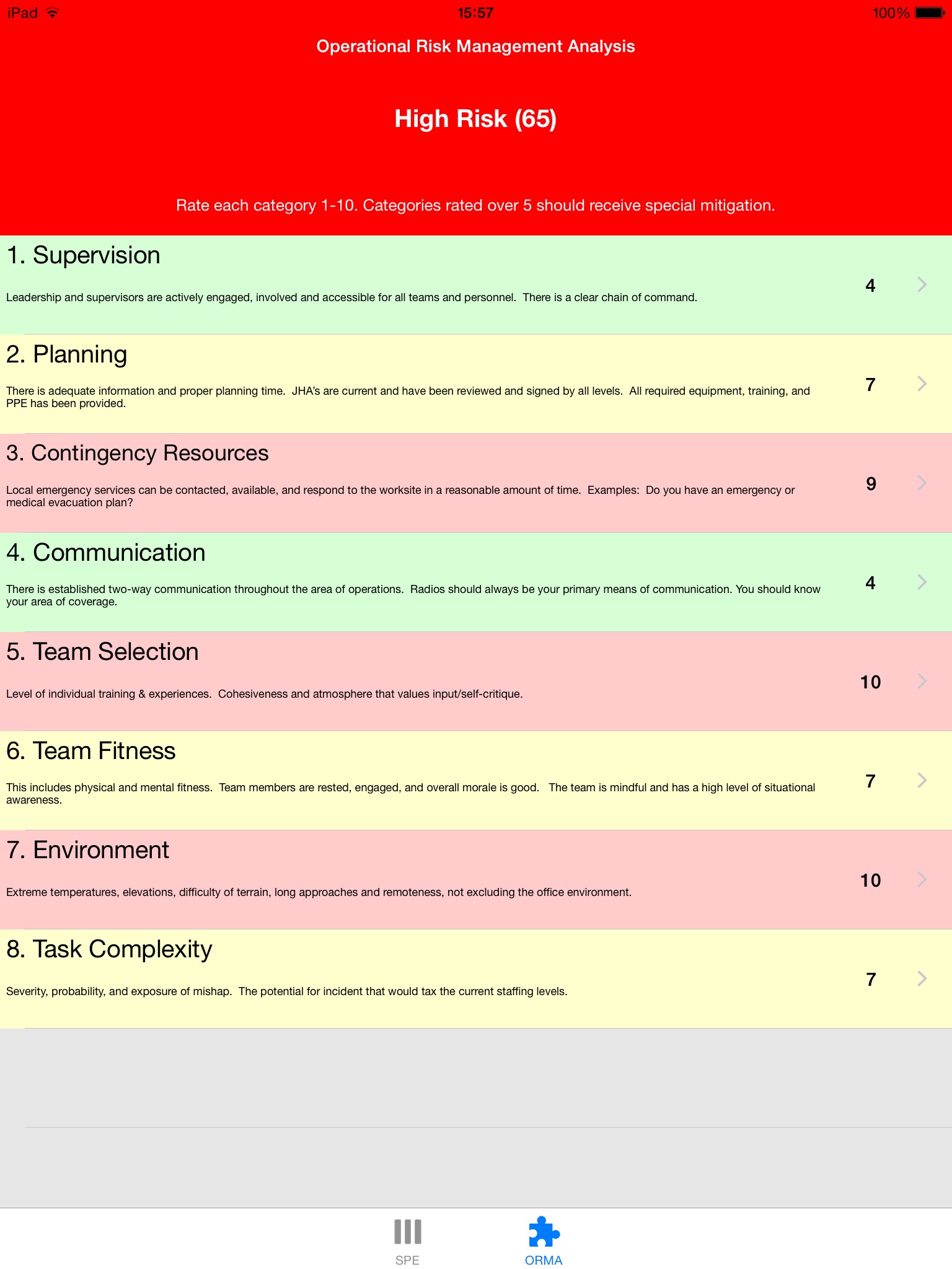 The Risk app is a calculator that uses the SPE and ORMA risk assessment models to determine risks and mitigate those risks. This app was developed as an alternative to the laminated paper card issued to National Park Service staff who complete Operational Leadership training.