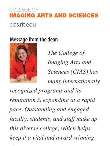 The six schools that constitute the College of Imaging Arts and Sciences offer a portfolio of distinctive and exciting programs of study, many of which are internationally acclaimed. If your interests are artistic, creative, and professional, one glance through the pages of this book will give you an idea of the amazing possibilities that await you.