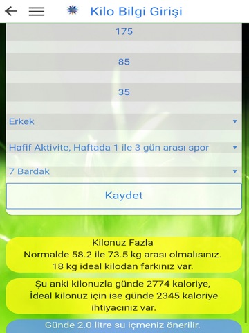 - İdeal kilonuza göre günlük enerji ihtiyacınız,