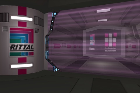 Puoi camminare virtualmente lungo i corridoi di una base spaziale ipertecnologica per scoprire gli ologrammi che mostrano i prodotti Rittal.