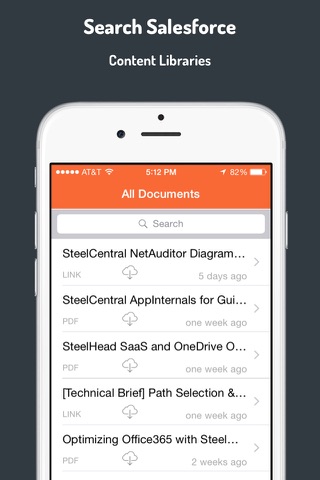 With RiverDoc sales reps can browse, view and search Salesforce Libraries documents even when they are offline (on a 6 hours coast-to-coast flight). Once they get online again, they simply pull-to-refresh to discover new documents. Sales reps can also instantly share the documents via email, sms or Airdrop, or cut and paste a feature description and quickly answer a customer request.