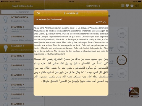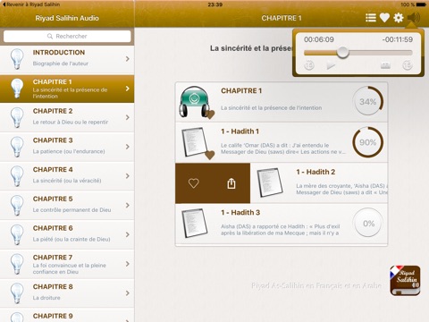 Cette application vous donne la possibilité de lire et découter les 372 chapitres du livre "Le jardin des Vertueux - Riyad As-Salihin" sur votre Iphone / Ipad / Ipod Touch.