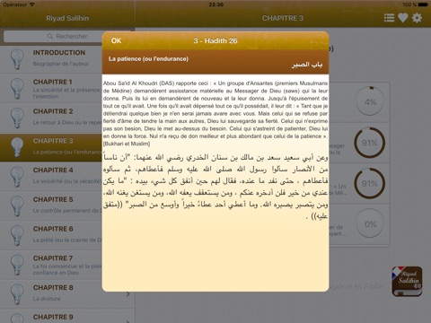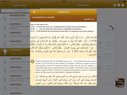 - Les 372 chapitres (extraits du Coran + 1896 Hadiths)