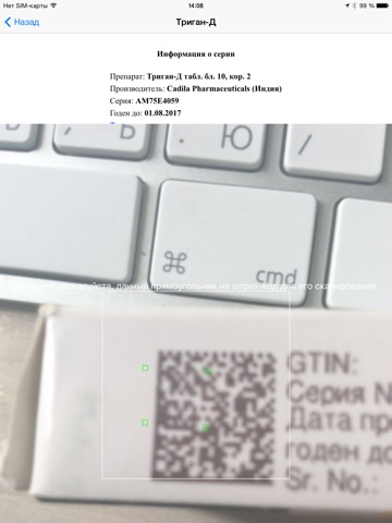 пр нажатии кнопки сканировать включается камера и ничего больше не происходит. Что бы ее отключить приходится полностью закрыть приложение.При введении срока годности препарата присутствует не только месяц и год, но день. Ни на одном препарате срок годности неуказан с днем, только месяц и год. После ввода серийного номера вручную тоже ничего не происходит. нет никаких кнопок поиска или чего то подобного. ВЫВОД: абсолютно нерабочее приложение, непонятно зачем выпущенное. Одно радует, что хоть денег за него не взяли.