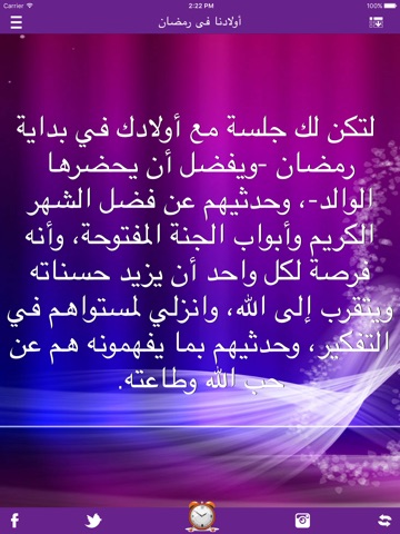 تطبيق رمضان يتضمن كل ما يتعلق بشهر رمضان الكريم من أدعية و أذكار الصباح و المساء و فتاوى نسائية و كيف تحبب أطفالك في الصوم و أداء العبادات بالإضافة إلى وصايا شهر رمضان والمسجات و صحة الصائم ...