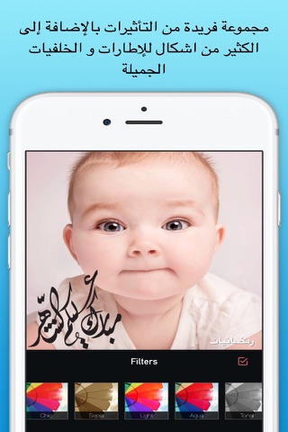 يساعدك تطبيق رمضانيات على جمع صورك و إضافة نصوص و رموز تعبيرية لجعل الصورة رائعة .
