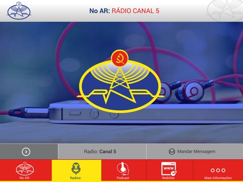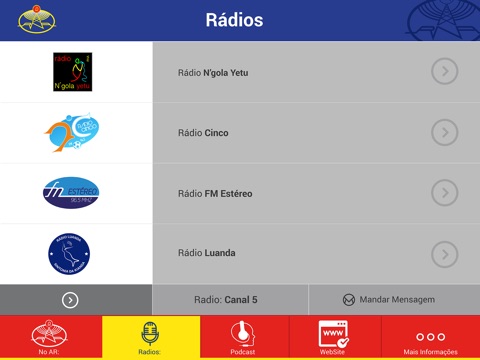 Aplicativo da Rádio Nacional de Angola, que dispõe de cinco canais de emissão.