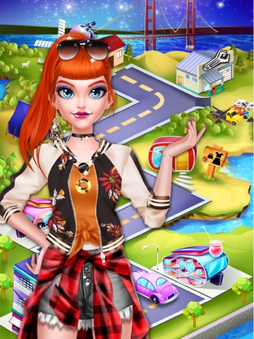 Next, head to the salon for a cool makeover. Apply eye shadow, blush and lipstick. Try on different colors of eye liner and mascara for completely different looks. Finish with cool sparkles and bronzers so you gleam like a sunshine princess on the road!