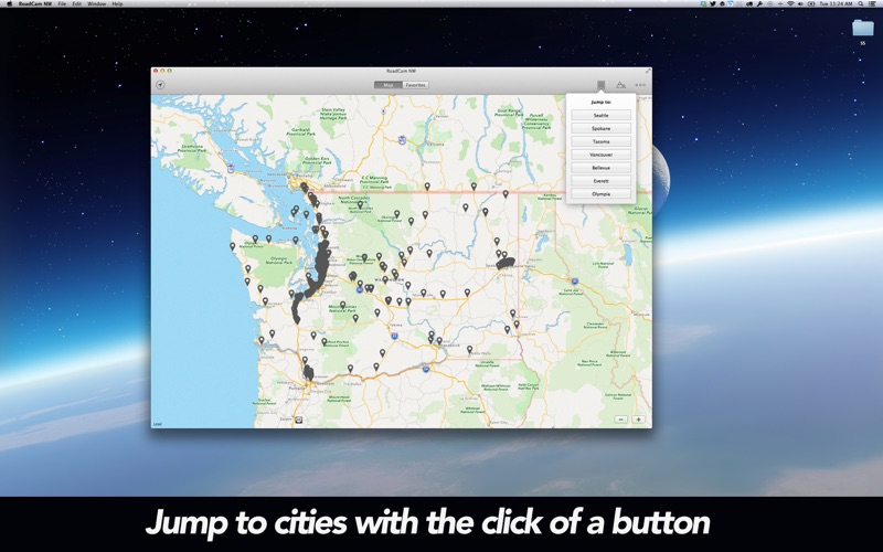 UPDATED REVIEW I had posted the review below due to a bug and the developer responded right away and said he would work on fixing it and sure enough, it is no longer an issue. Awesome! So I am changing my review to five stars and recommending it if you are looking for an easy to use traffic map app for your mac. I like the quick jump features that take me to top city’s or the mountain pass cameras. Easier to check if there is snow or traffic problems. Being able to save favorites is also a nice feature. ORIGINAL REVIEW I am running el Capitan. I like this app but it has one major bug that needs to be fixed. When I click on the View Camera button in the small camera window that pops up on the map, it opens a larger camera window with a button that says Back to Map; this button does not work. This means that all other functions on in the app are disabled until you close this pop up window. The problem is that the Back to Map button does not work so it freezes the app. You have to terminate the app using Force Quit Applications and restart the app to click on other cameras. If you fix this, it is cool to have all the maps in one app like this.