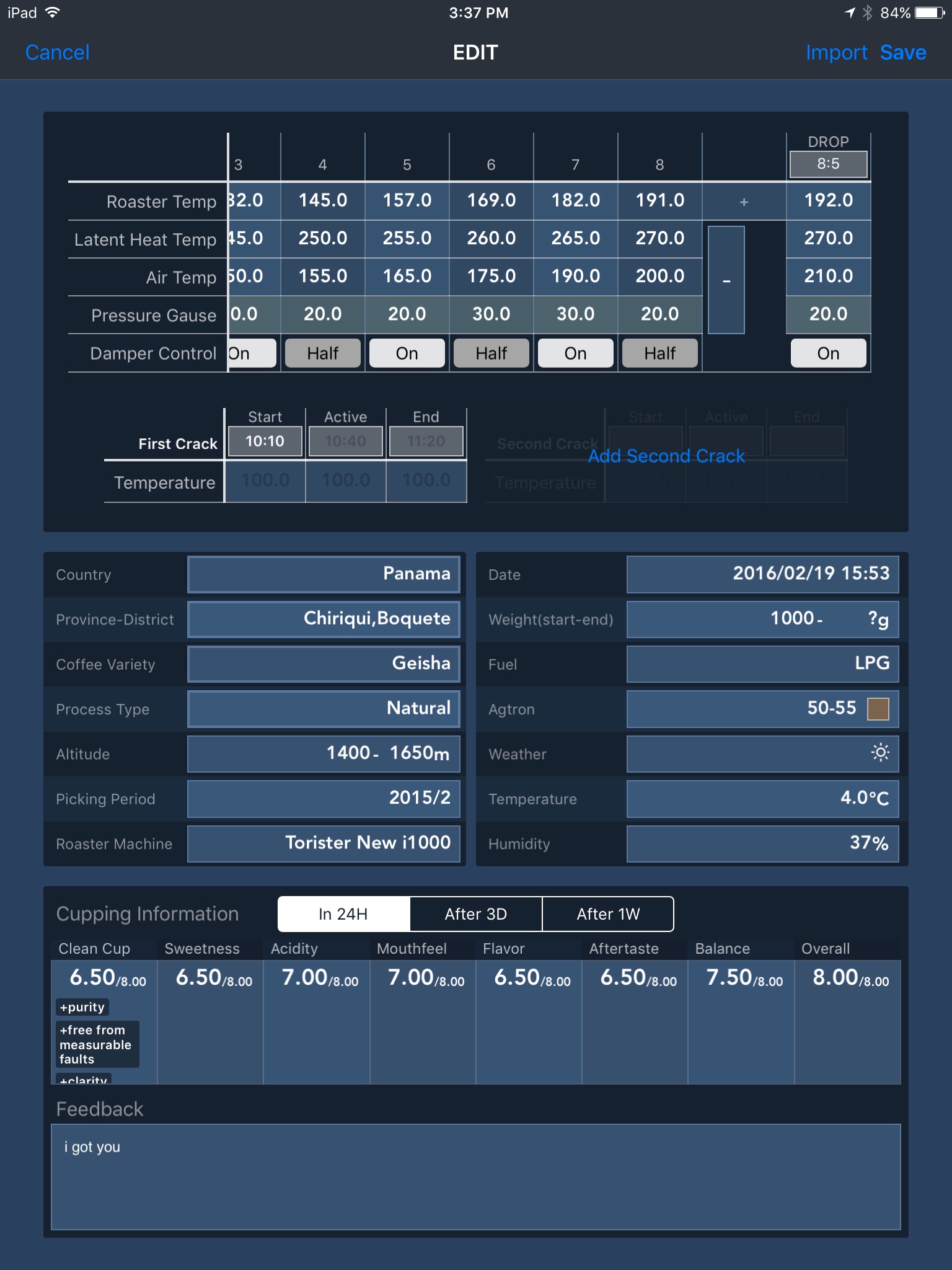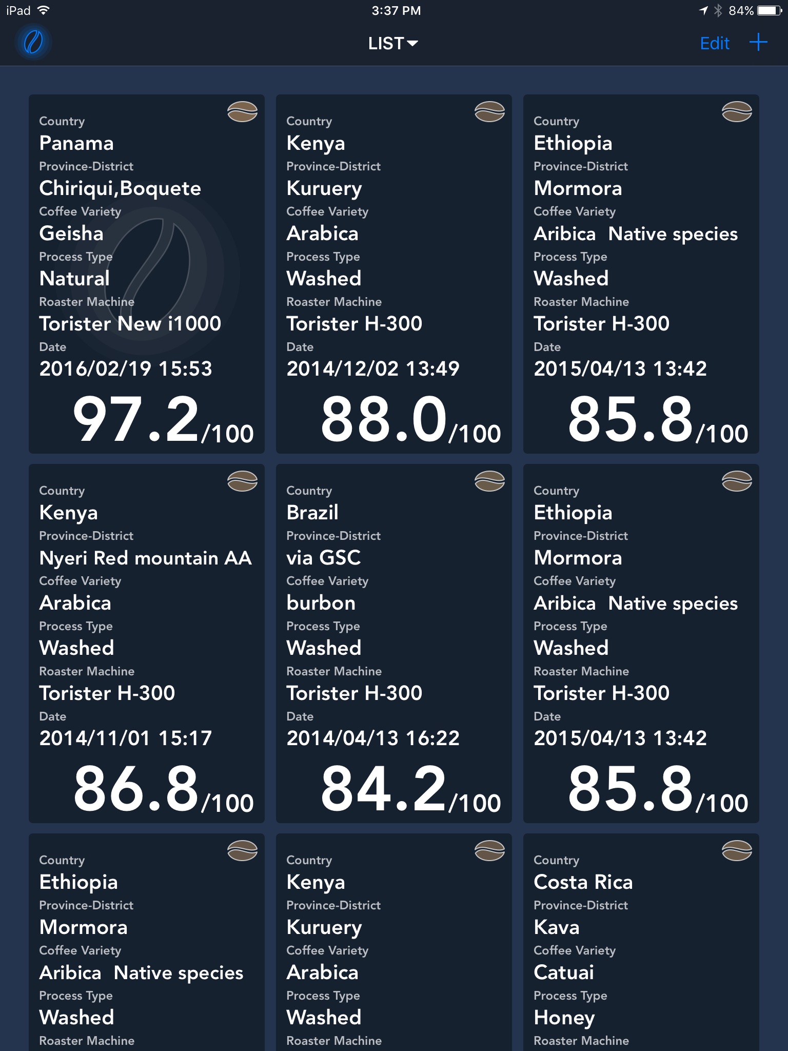 - You can input data from technical information(Country, Province-District, Variety etc.) to meta information(Weather, Agtron, Cupping etc.) .