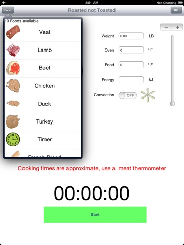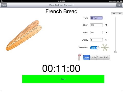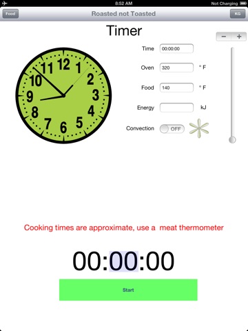 Roasted Not Toasted is a green App! When run on the iPad Roasted Not Toasted displays how much energy is used to cook your food.
