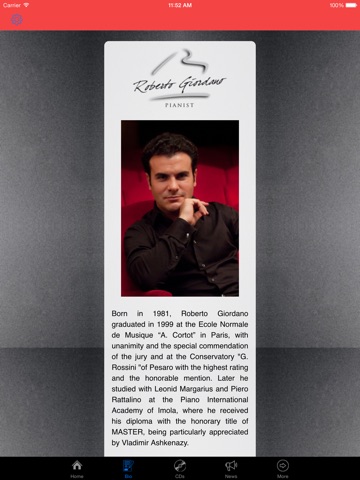 His videography includes, in addition to numerous videos for international broadcasters, two major works: a DVD for the series Pianissimo Collection, and recently, the DVD “Roberto Giordano plays Chopin”, both broadcasted by Sky Classica.