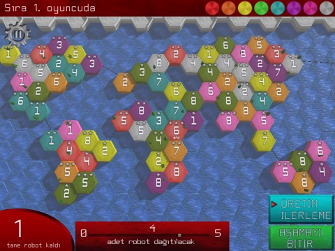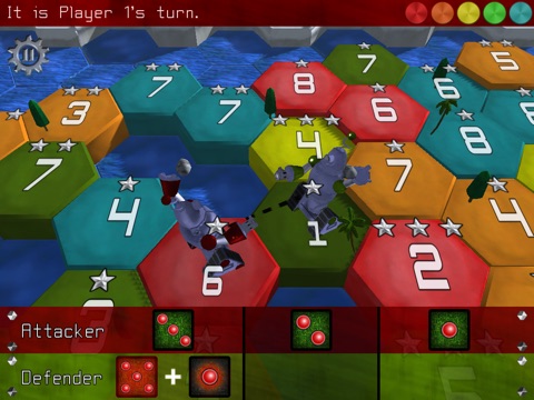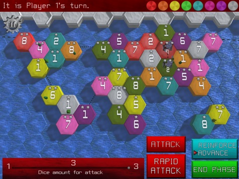 In this turn-based game, each players are robotic factions those inhabit on a hexagonal world. Your purpose is to capture all the hexagons, cleaning your foes from the map. The more hexagons you possess, the more troops you gain each turn.
