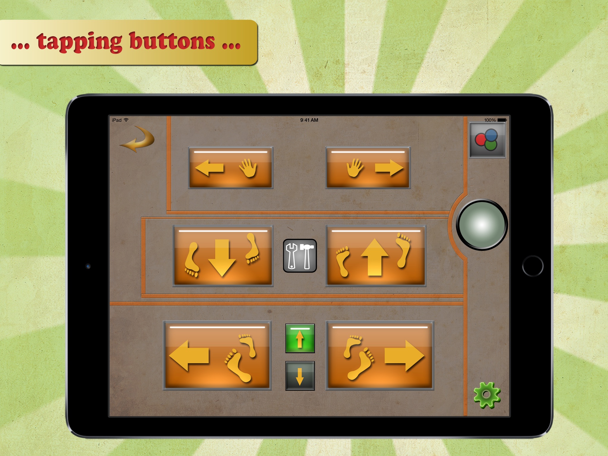 - button control remote: tap and hold buttons to move forward, backward, turn left,right, move the hands, and activate the color sensor.