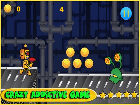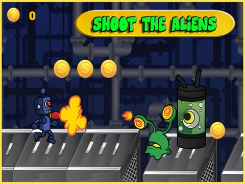 You are a future Robot Cop doing a secret investigation into the world of alien crimes but now been discovered and been held hostage in their all deadly base. run, shoot and slip past the alien defense and obstacles save yourself from the dangers fight back!! Never Forget to collect coins as many as you can grab !