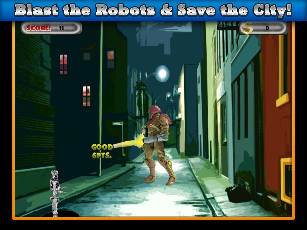 Robot Machines Attack from all directions! Shoot as many Robots as you can and earn cash to buy bigger guns! Take back your city! Beware, the game picks up pace the better your shooting gets. DOWNLOAD NOW FOR FREE!!
