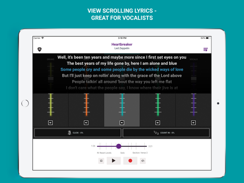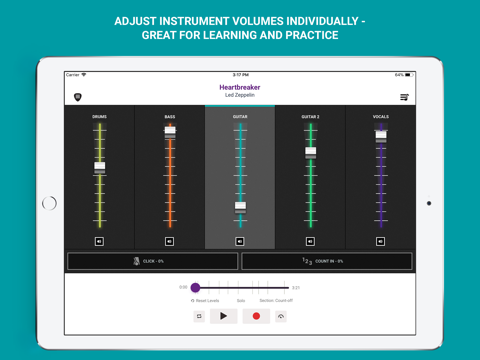 - CONTROL THE MIX: isolate or adjust the volume of individual instruments