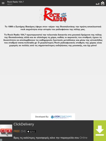 Το 1999 ο Σωτήρης Βακάρος έφερε στον «αέρα» της Θεσσαλονίκης την πρώτη αποκλειστικά rock συχνότητα στην ιστορία του ραδιοφώνου της πόλης μας. Το Rock Radiο 104,7 πρωταγωνιστεί την τελευταία δεκαετία στα μουσικά δρώμενα της πόλης της Θεσσαλονίκης αλλά και σε ολόκληρη τη χώρα, καθώς οι ακροατές του σταθμού, έχουν τη δυνατότητα να απολαμβάνουν τις καθημερινές ζωντανές μεταδόσεις και μέσω της ιστοσελίδας του σταθμού www.rockradio.gr. Ο μεγαλύτερος Rock ραδιοφωνικός σταθμός της χώρας είναι χορηγός σε πολλές από τις σημαντικότερες εκδηλώσεις της μουσικής, και όχι μόνο!