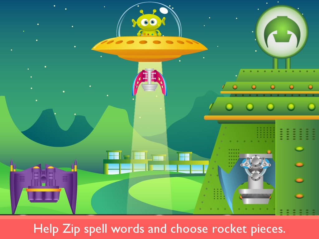 Kids join Zip the alien on an out-of-this-world spelling adventure to build a new rocket ship. Theyll spell words to help him fly to 3 different planets and collect the rocket pieces he needs. The game ends when they launch their fancy new rocket into space and steer it through a short star-collecting mini-game.