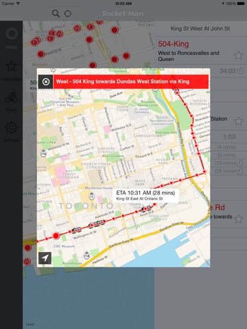 and easy to use. Rocketman shows you only the info you need, to get to your destination on time with minimal wait time. Whether you take the TTC (Toronto Transit), GO Bus, Brampton transit Zum, Mississauga Miway, or any other transit agencies, Rocketman will show you when your bus is coming, and see your bus arrive in real-time.