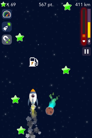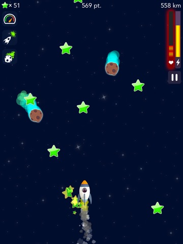 Try to become the NEXT ROCKET STAR!!! Fly in the universe with one of the 4 coolest rockets ever built. Collect as many stars as you can and get all power-ups that will give you a boost to the success.