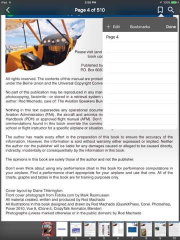 Rod Machado’s How to Fly an Airplane Handbook - 510 full color pages. This app is a fixed-page PDF containing the exact content of the physical book. There are no provisions for printing and highlighting in this app.