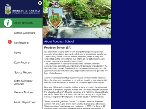 The Roedean School (SA) app contains a select on of features designed to keep parents, students and staff connected with the school. The app makes it easy to browse the school calendar, upcoming events, staff contact list, sporting fixtures and extra-mural activities. The app also allows you to create a personal profile and schedule. If there are any changes to an event or important /urgent information needs to be shared, a notification can be sent through timeously.