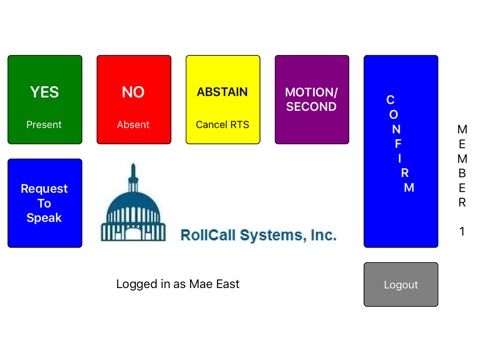 The RollCall Systems Keypad App is designed to work with any version of RollCall-Pro (our wireless roll call voting system for councils and boards of all kinds) and with RollCall-Audio (our wireless microphone control system with request to speak, a.k.a., RTS, functionality.