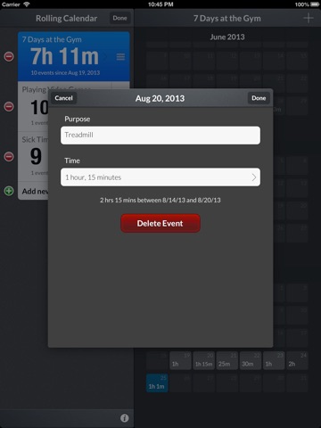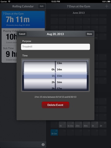 The app will also let you track what you used that time for. Go back through the calendar view and edit time you input in the past (or forgot to input!).