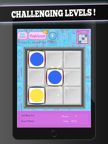 Rolling Cubic is a traditional style puzzle game where you roll three-colored cubics. The goal of the game is to arrange the cubics into the target pattern. It’s a three dimensional game played in a two dimensional field.
