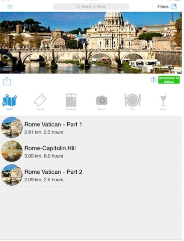 No Internet connection (3G/Wifi) needed on the tour itself as you pre-download the tours, maps and places data to your device, so you avoid costly roaming charges.
