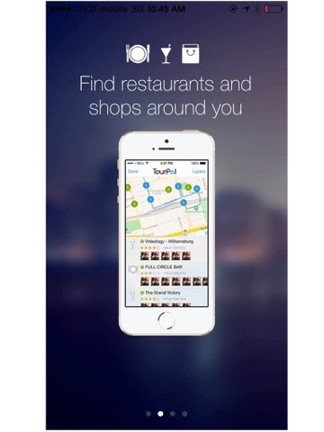 The map shows recommended restaurants, shops, bars and sites around you according to the input of millions of Foursquare users!
