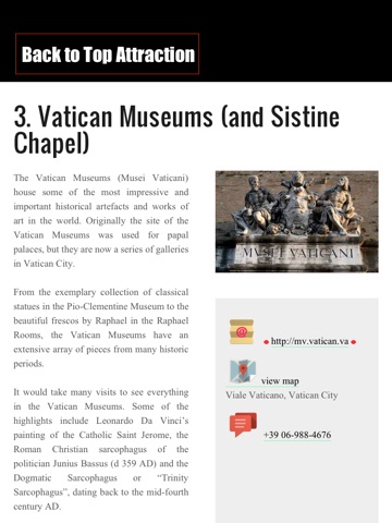 Rome Travel Guide equip you with a full city guide in your iPhone or iPad. Stop carrying heavy travel books in your backpack. Travel Lighter!