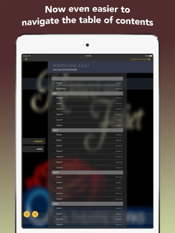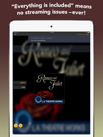 FEATURES: This app includes a stellar performance of “Romeo and Juliet” with sound effects and music, presented by L.A. Theatre Works, one of worlds leading producers of recorded drama